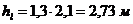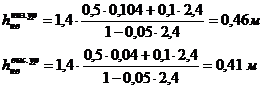 при глубине на пороге шлюза от 1 метра до 2,5 метров δmin=0,25