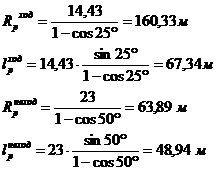 теперь радиусы дуг R и величину проекции палы на ось шлюза: