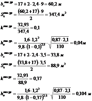 подходной части канала 339 м; переход от уширенного сечения к нормальному