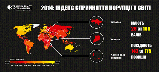 наша держава посідає одне з нижніх місць за індексом сприйняття корупції у