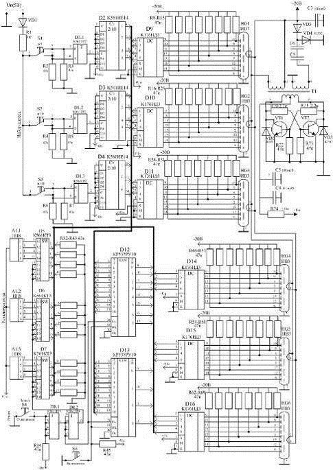 адреса через дешифраторы D9, D10, D11 индицируется люминесцентными индикаторами
