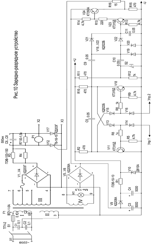 зарядно-разрядного узла устройства показана на рис.10. Сетевое напряжение