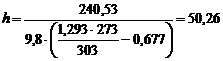 принятой ранее, следовательно, делаем пересчет, принимая высоту h = 50,26 м.