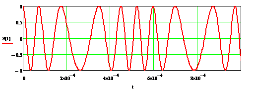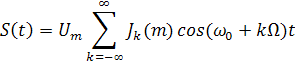 Формула для сигнала при гармонической модуляции: