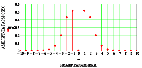 Рис. 9. Спектр ЧМ-сигнала при М=3,5.