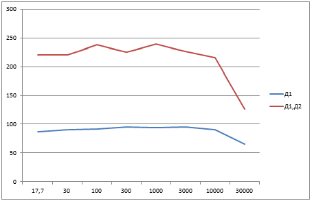частоты (порядка 30000 Гц) девиация относительно средней частоты уменьшается,