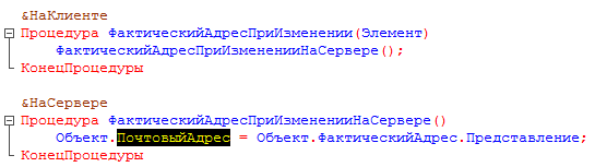 Рисунок 23 - Код процедуры «ЮридическийАдресПриИзменении»