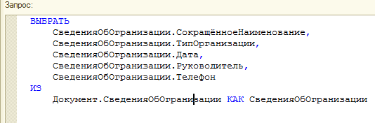 Необходимо создать отчёт для документа «Сведения об организации». Назовём