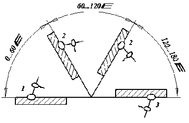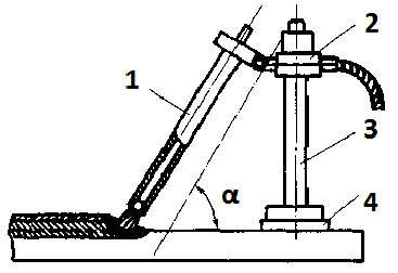 на горизонтальній площині кут нахилу електрода має бути 15° від вертикалі