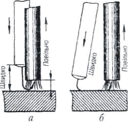 кінця електрода, проваром кореня шва та не допускають затікання рідкого шлаку