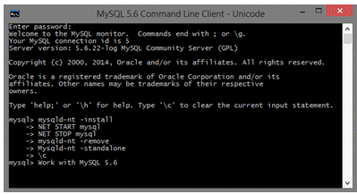 командной строки с помощью команд:START mysql [3.2]STOP mysql [3.3]