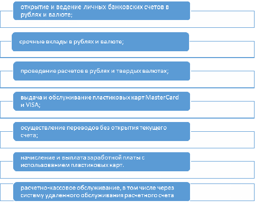 приоритетом развития. Физическим лицам банк предлагает услуги кредитования