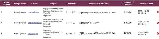 Чтобы удалить заказ, вам необходимо нажать кнопку «Удалить» напротив