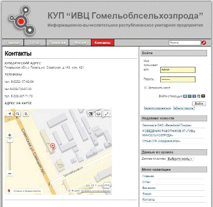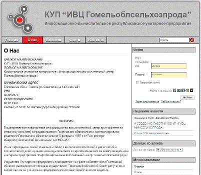 Разработка Web–ресурса КУП 'ИВЦ Гомельоблсельхозпрода', г. Гомель