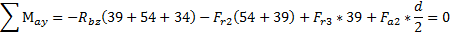 Схема осевых сил, действующих на подшипники.