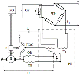 РП - поляризованное реле (усилитель), Д - двигатель, ОВ - обмотки возбуждения