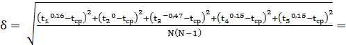 = 0,00058T = Δt/ t = 0,34/18,62 = 0,018