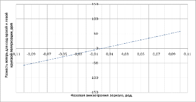 левой круговыми поляризациями в зависимости от фазовой анизотропии зеркал;