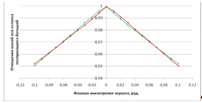 влияния друг друга. Влияние фазовой анизотропии первого зеркала - минимально.
