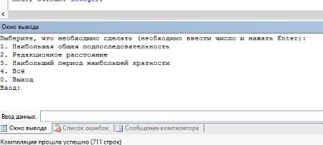 press Enter):\n»);(«1. Largest common subsequence\n»);(«2. Edit dinstance