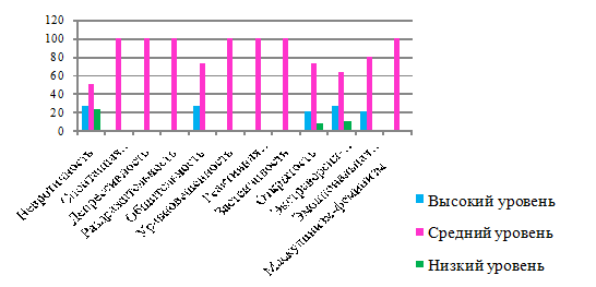 в диапазоне 1-3 балла, к средним - 4-6 баллов, к высоким - 7-9 баллов. При