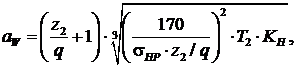 значение межосевого расстояния червячной передачи, исходя из контактной