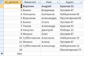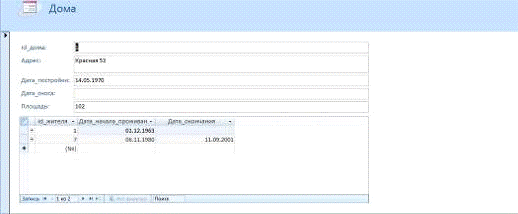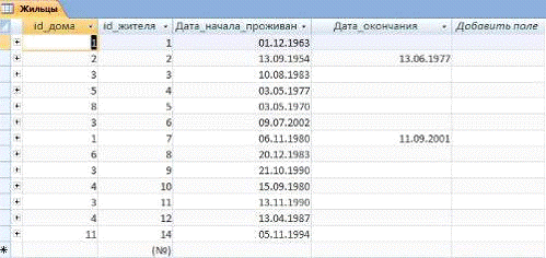 таблицы «Дома» и «Жильцы» связываются по значениям полей id_дома
