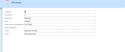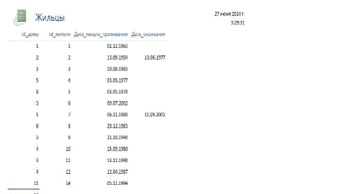 Рис.19. Общий вид отчета по таблице «Жильцы».