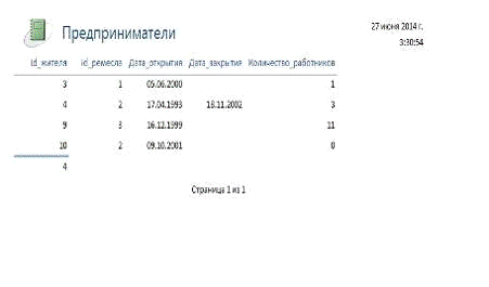 Рис.21. Общий вид отчета по таблице «Предприниматели».