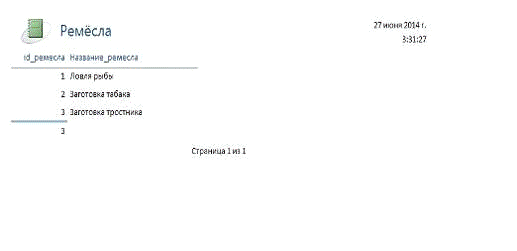 Рис.22. Общий вид отчета по таблице «Ремёсла».