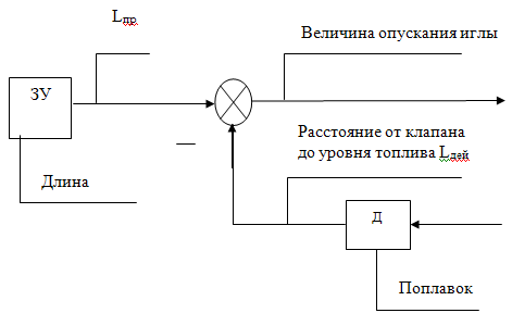 опусканию поплавка при уменьшении уровня топлива. По функциональной схеме