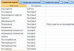 Аналогично, как и в таблице «Справочник изделия», было создано поле со