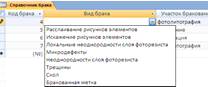 Рисунок 23 – Поле со списком для атрибута «Вид брака»