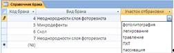 таблицы «Справочник брака»