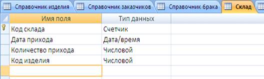 На рисунке 27 изображена структура таблицы «Склад».