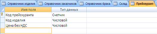 На рисунке 29 изображена структура таблицы «Прейскурант».