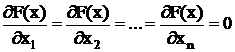 В точці екстремуму цільової функції F(x1,x2, … ,xn)