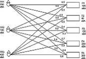 транспортної задачі з двома вихідними пунктами та чотирма пунктами споживання.