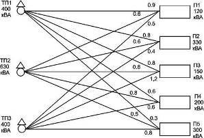 потужності споживачів та відстані між ТП та споживачами.