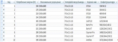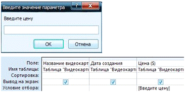 · Запрос о видеокартах (с условием ввода цены на видеокарту)