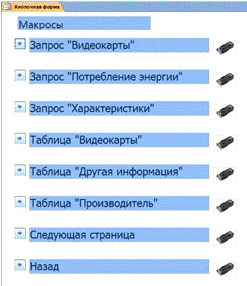 В базе данных «Видеокарты», были разработаны макросы на открытие таблиц и