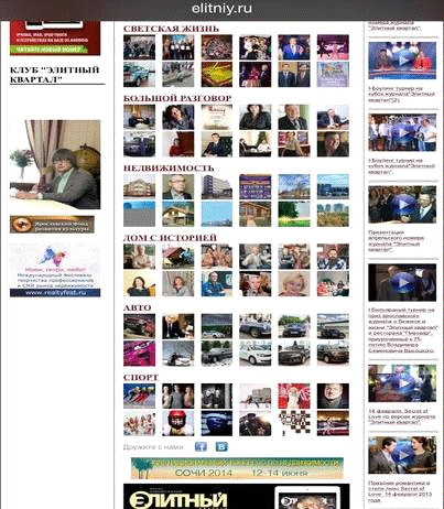 рекламной информации в той или иной рубрике журнала, "Элитный