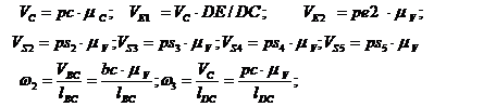 остальных звеньев: шатун 2 совершает плоское движение; кулиса 3 - вращательное