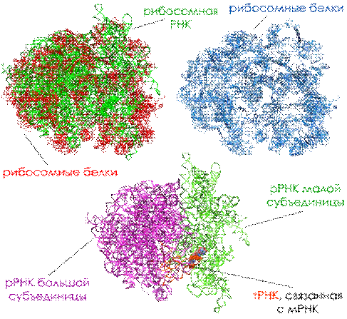 рибосомными белками, и нескольких молекул РНК, называемых рибосомными РНК.