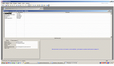 Основная работа по созданию данного объекта базы данных велась в конструкторе