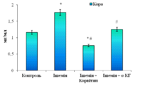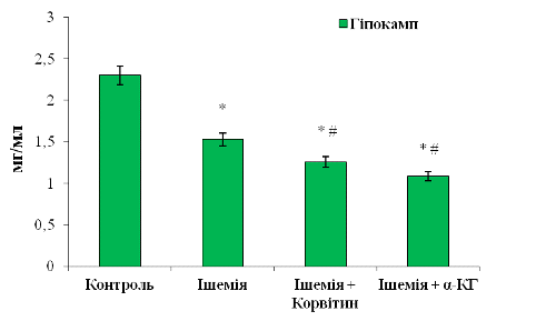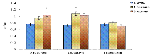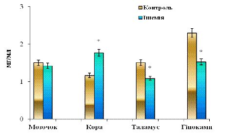 загального протеїну у цитозольних фракціях мозку. Вивчено розподіл основного білка