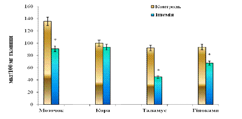 різних відділах головного мозку. Оцінено вплив ізадрину та пітуїтрину на вміст