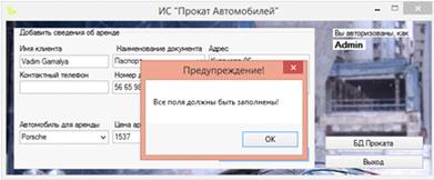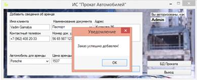 просматривать Базу Данных Прокат автомобилей!", "Уведомление");