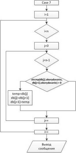 массива, в качестве сортируемого выступает вид оборудования. Записи с которым
