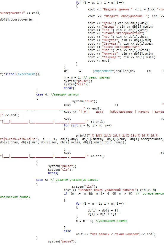 пользователя ввести номер записи которую он хочет удалить. В этом пункте меню